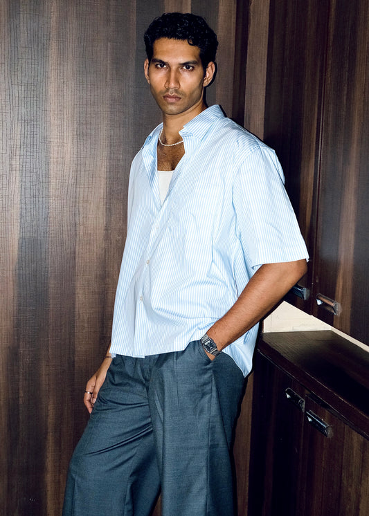 Tailored Wool blend Half Sleeves Shirt - Grey