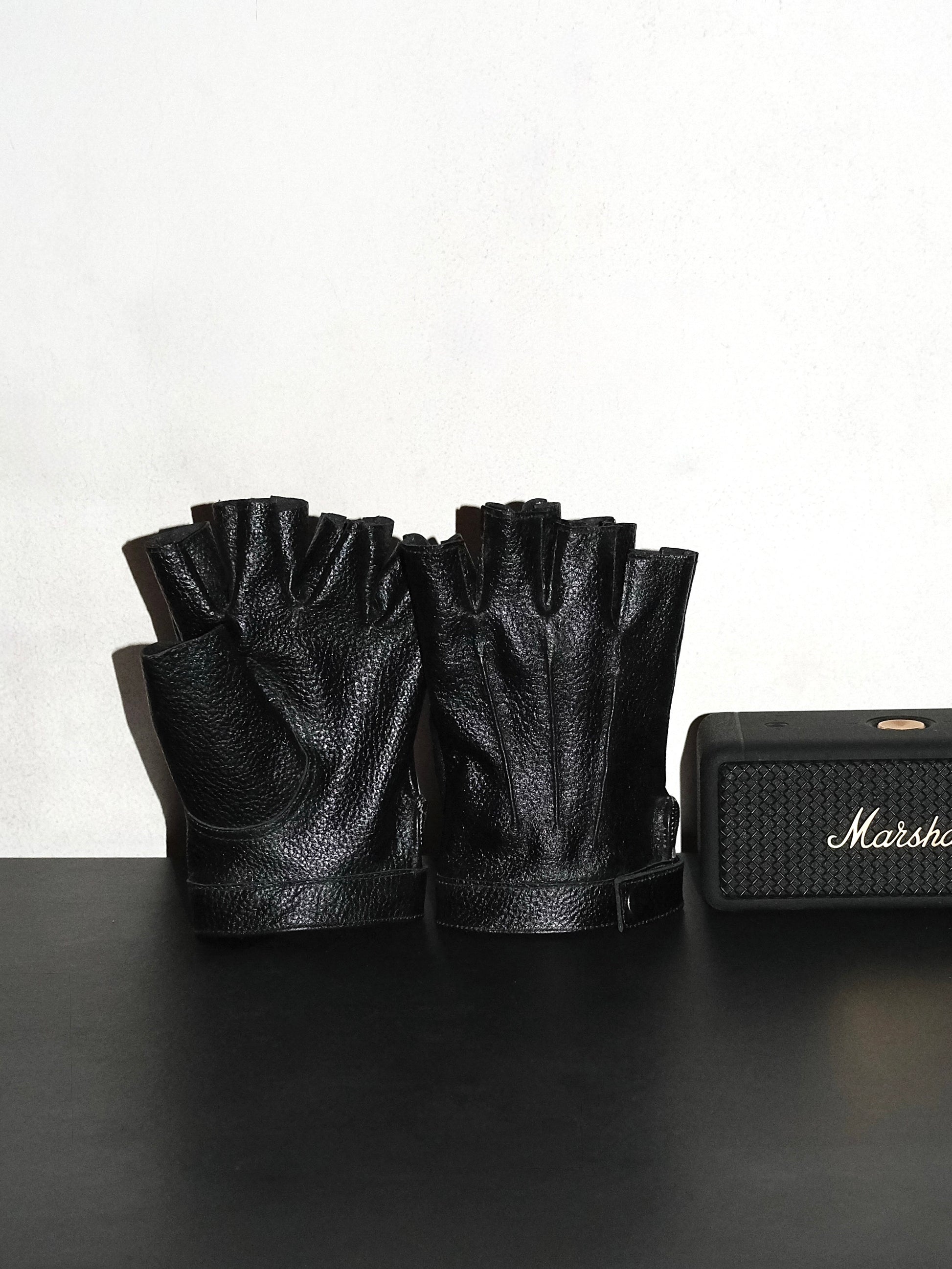 Handmade Leather Half Gloves- Black